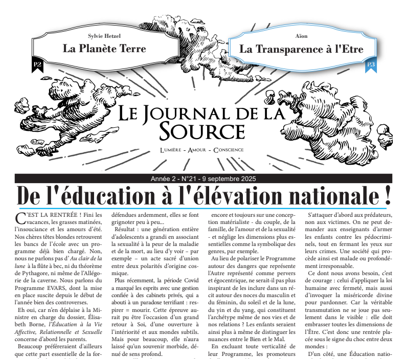 Avec des rubriques science, spiritualité, astrologie, Amour et Lumière, esprits de la Nature, livres, films, ufologie… :